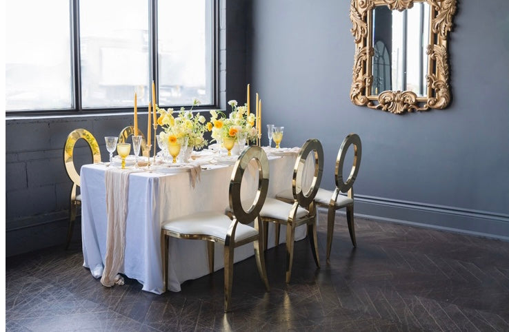 Our gold Halo Cartier chairs are available for rent for your next level celebrations.